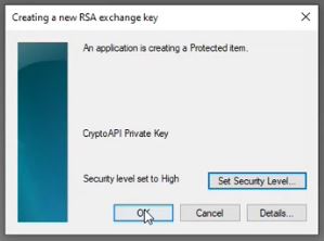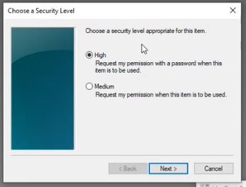 Select the security level "High" and click Next
