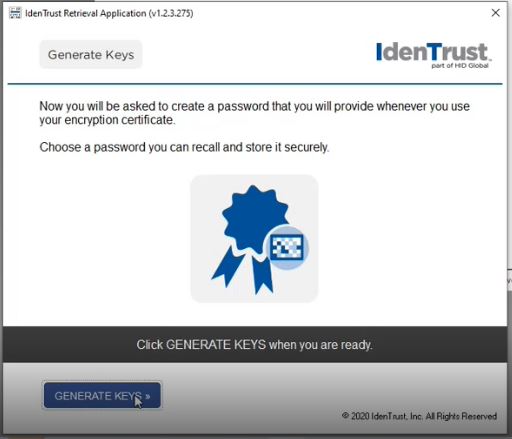 The Retrieval Application will now generate a key pair