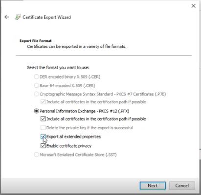 Select "Export all extended properties"