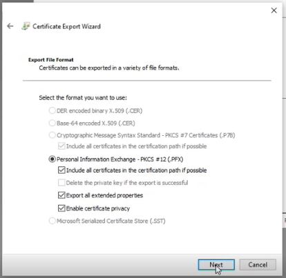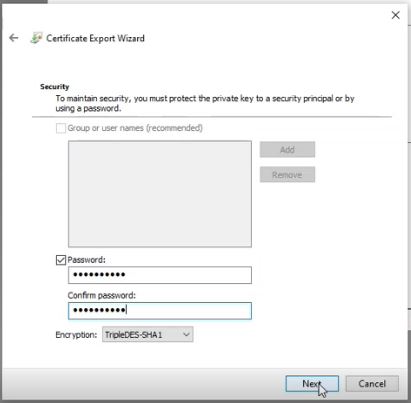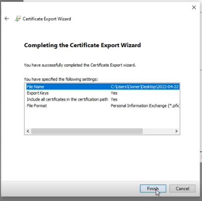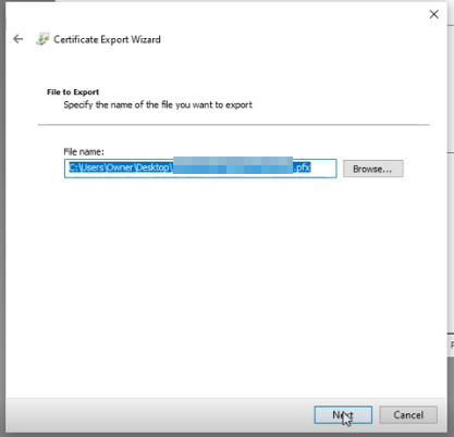 Select a path to export and save your certificate. We recommend saving it to a safe directory on your local computer.