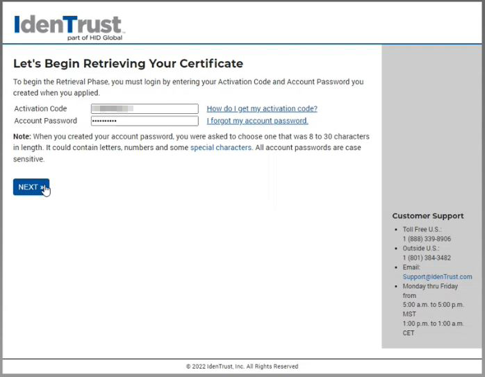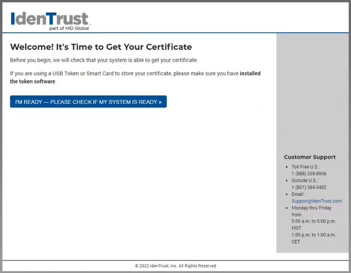 After you purchase your certificate you will need to wait for an email from Identrust.
