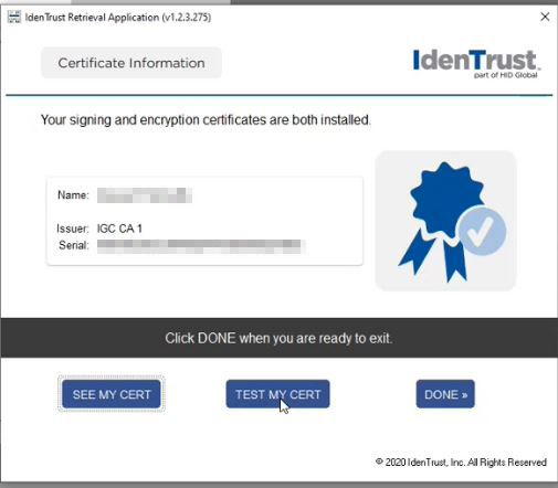 You may test your certificate if you wish to confirm the installation was successful.