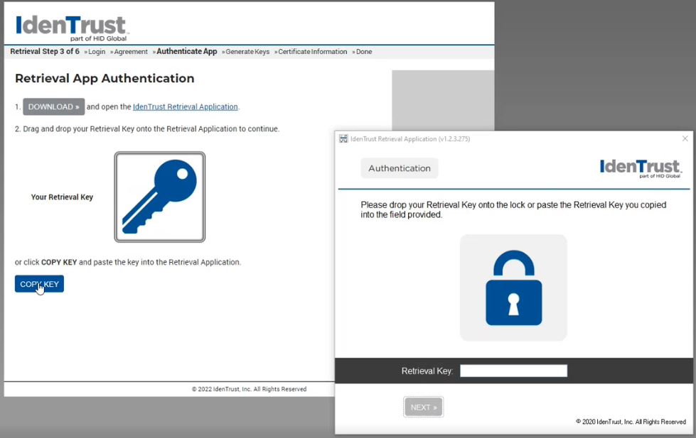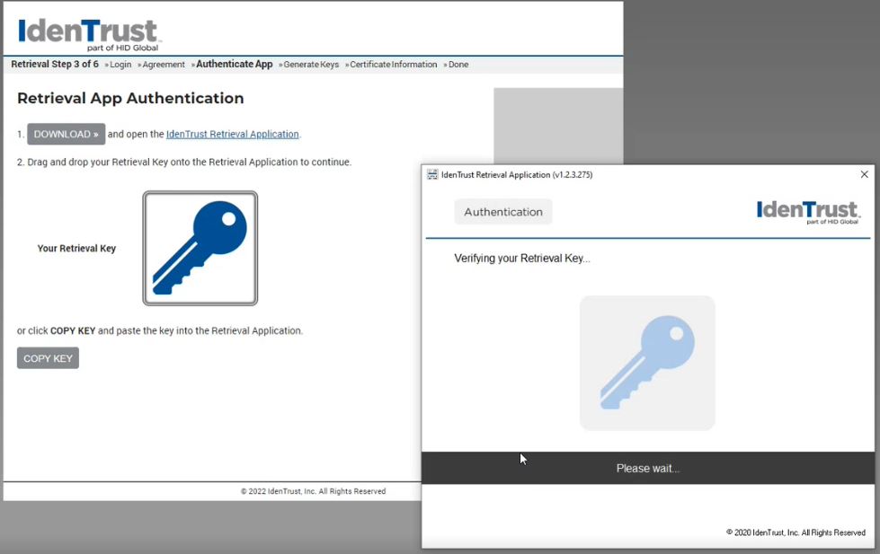 The Retrieval Application will then verify your Retrieval Key.